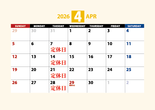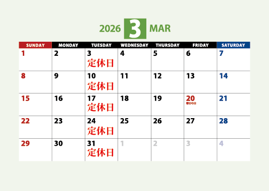 定休日:火曜日(祝日の場合は水曜日)